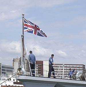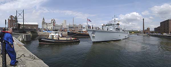 Reliably informed that HMS Hurworth is a mine hunter/destroyer. She was in Liverpool for a few days and left on Tuesday 6th July 2004 at around 2.30pm.