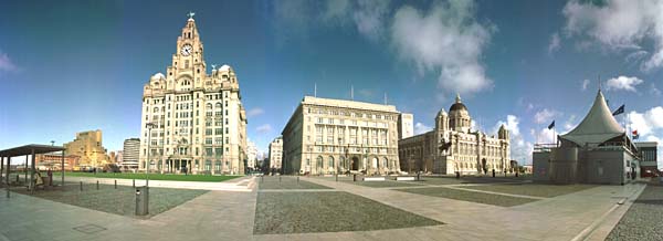 The Three Graces face the river. Quite often the first view that returning seamen get of Liverpool as their ship steams down the Mersey to a berth at one of the many commercial docking facilities that stretched for miles down the waterfront both north and south of these buildings.