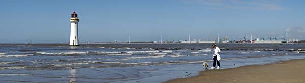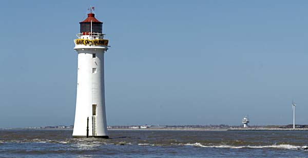 Here you see the Lighthouse at New Brighton while on the far side of the River Mersey Estuary you see the Bootle Container Base as a backdrop.