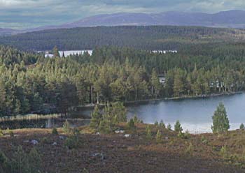 Not far away from Loch an Eilein. Just a small patch of land separates the two lochs, no more than a few hundred yards. On this photo Loch an Eilein is just visible on the left...
