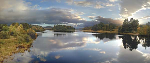 Often admired this view from the bridge at Kincraig. This time I couldn't pass by without capturing the whole scene as a panorama. The shot was not long before dusk and the light was rapidly fading. The loch narrows here and emerges on the other side of the bridge as a continuation of the river Spey.