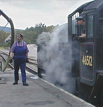 We were on our way back to Insh from a circular tour taking in Grantown and Loch Garten. We stopped to get some Ice Cream at Boat of Garten and I took the opportunity to photograph the steam engine that was taking on water at the station.