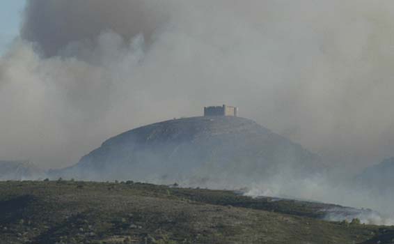 the veranda of the apartment at L'Escala we watched as fire fighting